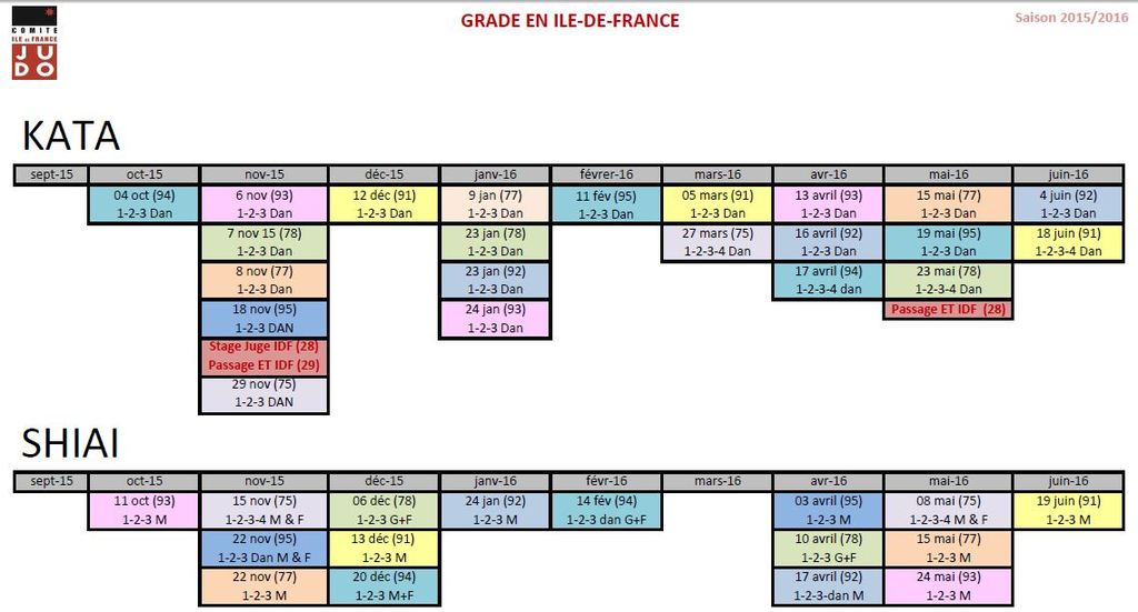Le calendrier des Shiai et Kata de l'Ile de France est sorti. Réservez dès à présent ces dates et dites nous auxquelles vous souhaitez vous inscrire. Les places sont limités et partent très vite!
